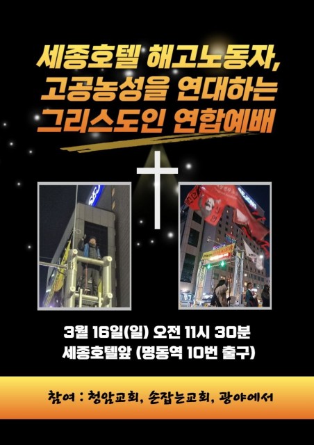 사순절 현장 연합예배 '세종호텔 해고노동자 고공농성 연대'(2025.3.16)